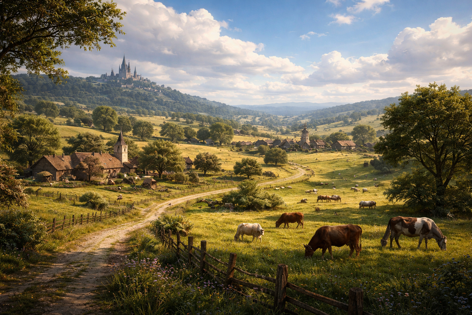 Wer die Weitenmark durchreist, begegnet dem offenen Herzland der Markgrafschaft. Weite Felder, sanfte Hügel und lange Landwege prägen das Bild, dazwischen ziehen sich Bäche durch Wiesen und treiben Mühlen an, während verstreute Höfe, Gutssiedlungen und kleine Kapellen die Landschaft still gliedern. Nichts wirkt hier gedrängt oder eng. Die Weitenmark atmet Raum, Ruhe und jene beständige Fruchtbarkeit, auf der das ganze Land ruht.